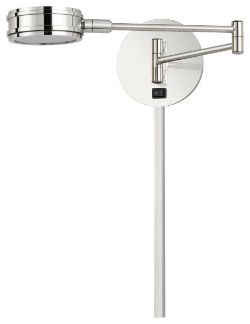 Update your decor with this sleek and modern high gloss chrome swing arm wall lamp. It features an easy access rocker switch on base and adjustable head for optimal control of light. All contents ship securely in one carton and lamp ships complete with three matching 1 foot wire cover sections.