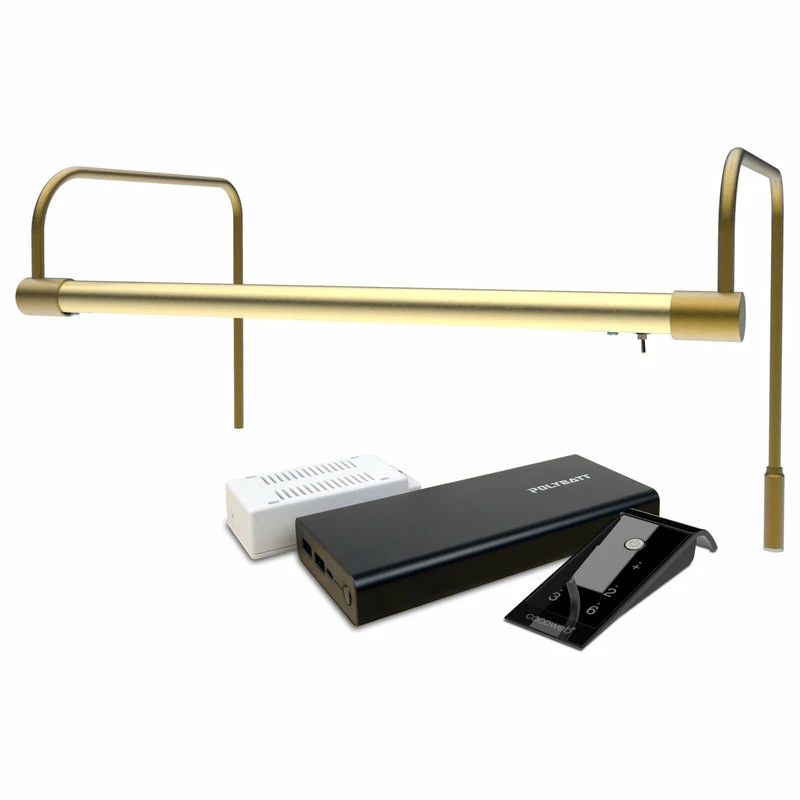 This item includes a Rechargeable Battery kit, allowing you to have your light operational when no outlets or wiring is near-by, and the convenience of not having to deal with replacing batteries every so often. This kit also includes a wireless remote allowing you to turn the light on / off from a distance, adjust the brightness of the lamp, and turn on an auto-off timer. Please note that before turning the light on, there is a power button located on the battery that must be pressed first before every use to conserve battery power.
