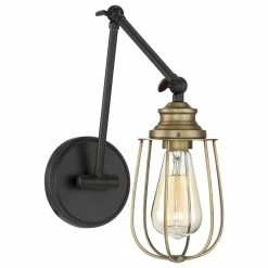 Go industrial with this cool swing-arm wall sconce, which features a metal cage-style shade finished in brass to pair perfectly with the overall oil rubbed bronze finish.