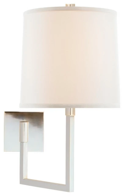 - Aspect Large Articulating Sconce in Soft Silver with Ivory Linen Shade