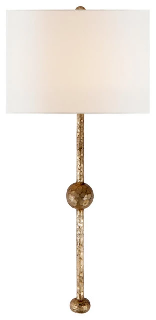 - Carey Rail Sconce in Gilded Iron with Linen Shade