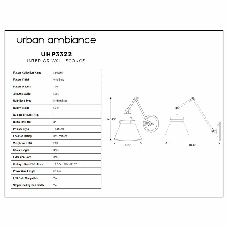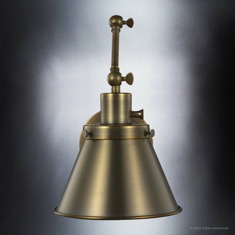 STYLE AND DESIGN INSPIRATION: Small in size and crafted in a Traditional style, the Modern Farmhouse design is both beautiful and balanced making it a sought after fixture in our product line at Urban AmbianceMATERIAL AND FINISH: Made from high-quality Steel with our Olde Brass finishDIMENSIONS: 14-3/8”H, 8-1/4″”W, 18-3/8”Dep (see image gallery for dimensional drawing)BULBS, WATTAGE AND LIGHT DIRECTION: Requires one 60 Watt ST19 or A19 Medium Base bulb (not included) producing warm, ambient lightingINSTALLATION: Indoor (Damp Locations) and wall mounted (installation hardware and instructions included)