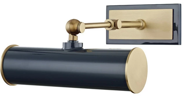 Wall Sconce 1 Light Bulb With Aged Brass and Navy Steel Material E26 8″ 25 Watt.